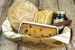 Our most popular combination includes a loaf of honey Whole Wheat, a six pack of our giant cookies, and a jar of gourmet jam in a gift bag with tissue.